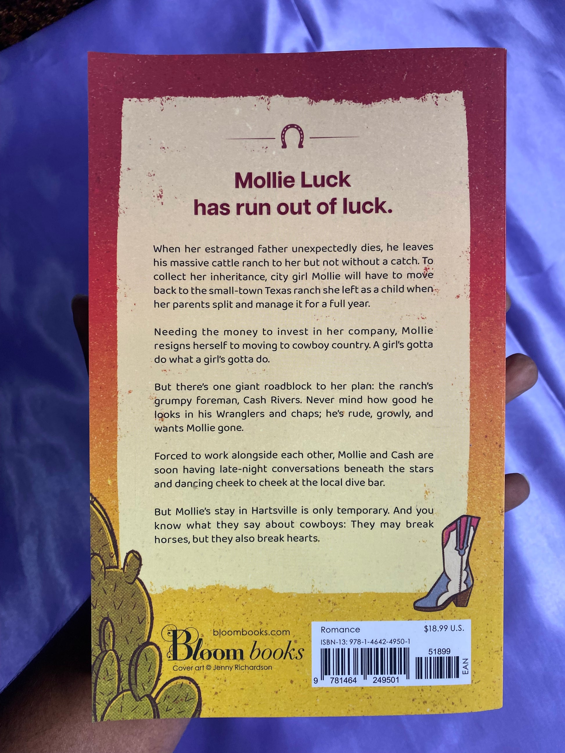 Mollie Luck has run out of luck. When her estranged father unexpectedly dies, he leaves his massive cattle ranch to her―but not without a catch. To collect her inheritance, city girl Mollie will have to move back to the small-town Texas ranch she left as a child when her parents split and manage it for a full year.